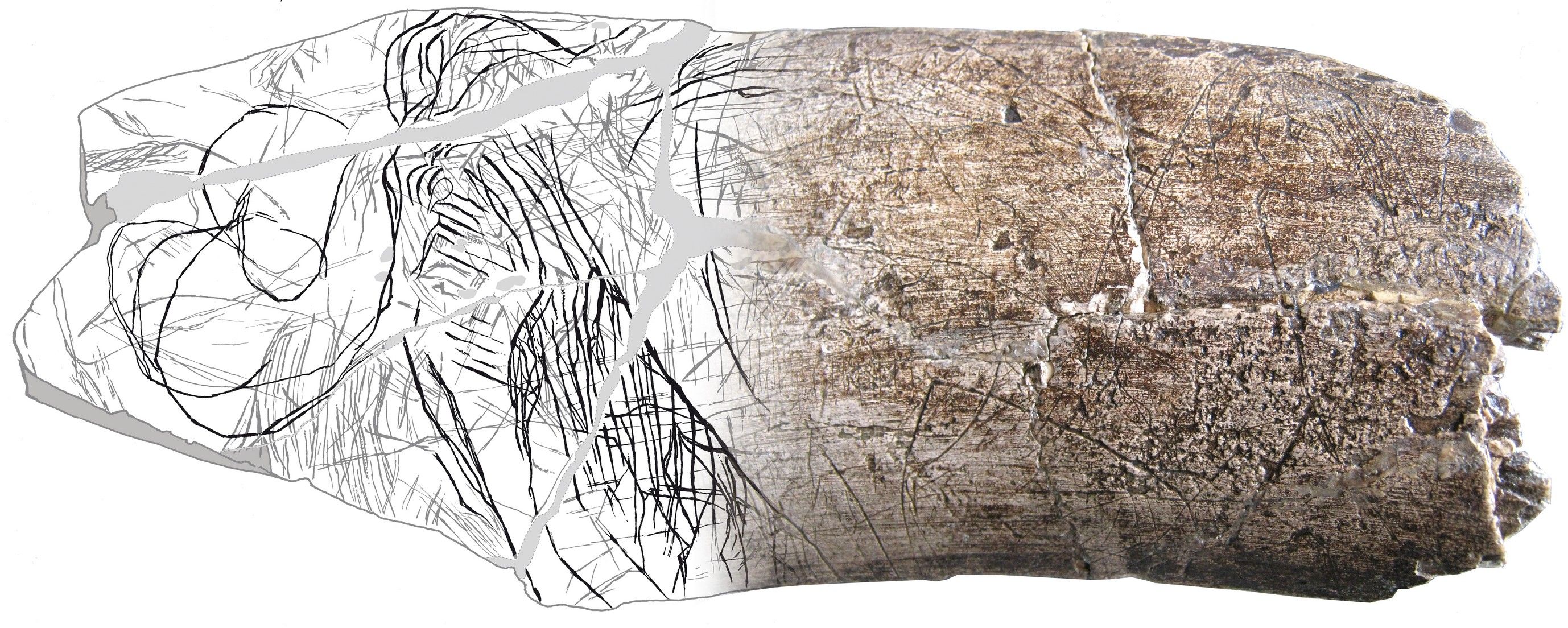 El "Mamut de La Madeleine", descubierto en 1864 por E. Lartet. Dibujo y foto P. Paillet