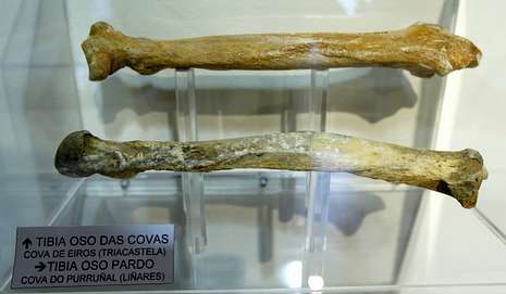 | Huesos de oso cavernario y oso pardo en el museo quirogués (2014). Foto: Alberto López |